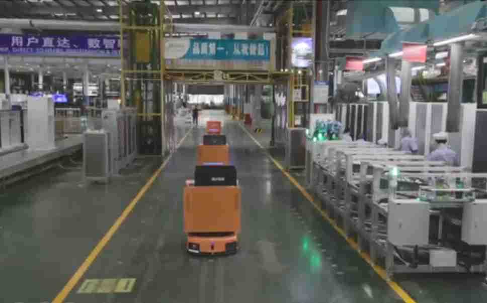 为车载冰箱物流配送打造的智能解决方案,,包含产中物流通过潜伏举升AMR搬运至线边,,,,产后成品物流智能仓储,,,,流程包含产中物流智能齐套入库,,线边安灯叫料AMR智能配送至线边,,,,成品入库、、、、出库,,通过无人堆高车机器人,,,,智能仓储管理替代人工作业管理,,,,实现更高存储、、、、更高效率、、更具柔性化的解决方案。。。。